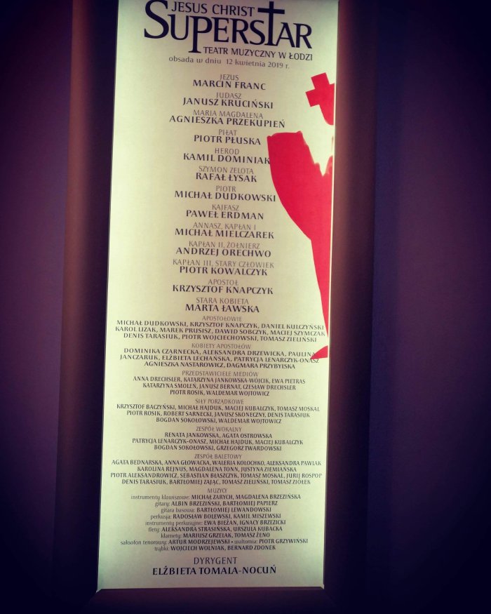 „Jesus Christ Superstar” to jedno z tych wydarzeń na które czekałam tak, jak kiedyś na „Metro” Józefowicza. Doczekać się, pójść raz i wystarczy. Nie, nie wystarczy. Później czeka się do kolejnego sezonu i kolejnego. Dlaczego…? Chce się oglądać, przeżywać ruch, mimikę postaci, każdej z osobna – Piotra, Jezusa, Marii Magdaleny, Piłata – nikogo nie można tu pominąć. Chce się słuchać wszystkich razem w przepięknych dźwiękach, które jak już wnikną w Widza, to wibrują po Nim całym. Ostatnie moje spotkanie z „JChS” było wyjątkowe. Świetna miejscówka, tzn. rząd , moja ukochana obsada, i co jeszcze cudowne towarzystwo, mini fanclub łódzkiej rock opery, a po spektaklu truskawka na torcie -rozmowa z aktorami i urodzinowa niespodzianka dla Marcina Franca. W zaplanowanym momencie wręczania urodzinowego kolażu było trochę oficjalnie, dalej już tylko spontanicznie. Wspólne zdjęcia ze sceniczną Marią Magdaleną, Piłatem i Jezusem, na zmianę z wyrazami zachwytu nad trzema Osobowościami. To skrót ze spotkania. Agnieszka Przekupień, Piotr Płuska i Marcin Franc w swoich teatralnych charakteryzacjach. Czy można było chcieć więcej …? Jedynie więcej słów, rozmów. Ale każdy chciał pamiątkowe zdjęcie z prześliczną Marią Magdaleną, „brudzącym” Jezusem i czarującym Piłatem.