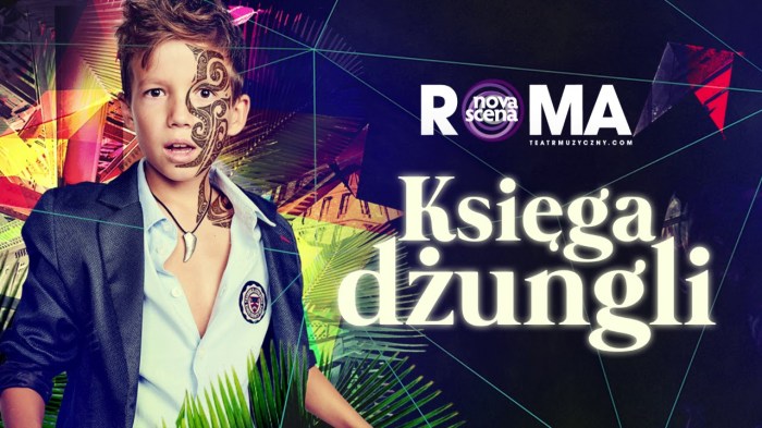 „Księga dżungli” to muzyczna propozycja Novej Sceny Teatru Muzycznego ROMA, skierowana głównie do młodego widza. To historia chłopca zwanego „Żabą”, który trafia do dzikiej i bezwzględnej, ale kierującej się swoim odwiecznym prawem zwierzęcej społeczności. Uwspółcześniona adaptacja powieści potraktowana została jako wspaniała okazja do zmierzenia się z trudnościami i możliwościami jakie stwarza zderzenie się dziecięcego świata, ze światem tak zwanych: „dorosłych”.