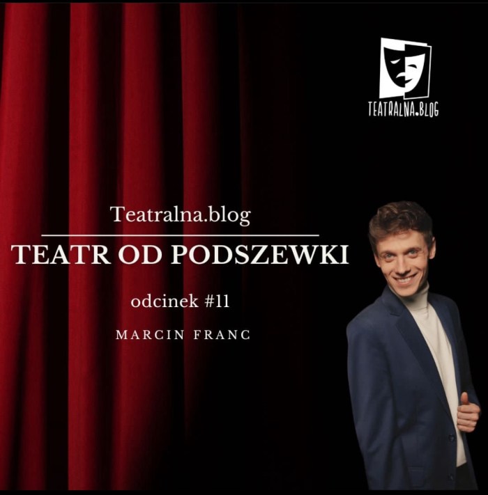 Cześc!Z tej strony Teatralna.blog, czyli MarysiaDzisiaj jest przedostatni dzień roku, kiedy to zleciało… Korzystając z okazji,zapraszam Was do odsłuchania ostatniego odcinka podcastu (w tym roku).Moim gościem był Marcin Franc — aktor musicalowy, filmowy i dubbingowy, wokalista. Link do rozmowy na Youtube tutaj: https://youtu.be/-Rw8wZfwKk4Link do rozmowy na Spotify tutaj: https://open.spotify.com/episode/4h4ldoRyKUfXOgiVAyzWEz?si=cQF0bjGqS-mNRKblr_Pm2w Marcin Franc - aktor teatralny, filmowy, … Czytaj Dalej Teatr od podszewki #11 Marcin Franc
